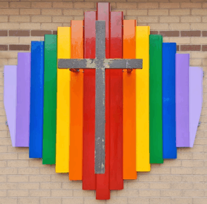 The Rainbow Cross at Portholme Church is more than an artistic addition – it is a public celebration of faith, resilience, and the unchanging promise of God’s love. Conceived and visualised by a talented member of the congregation, the Rainbow Cross stands at the front of the church, inviting all to reflect on its profound scriptural roots.